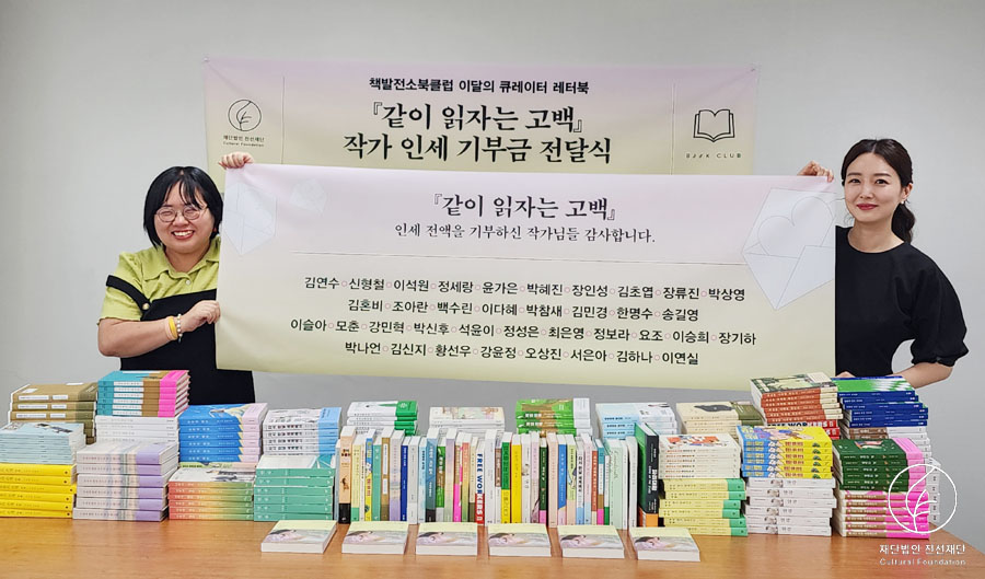 책발전소북클럽 '같이 읽자는 고백' 작가 인세 기부금 전달식