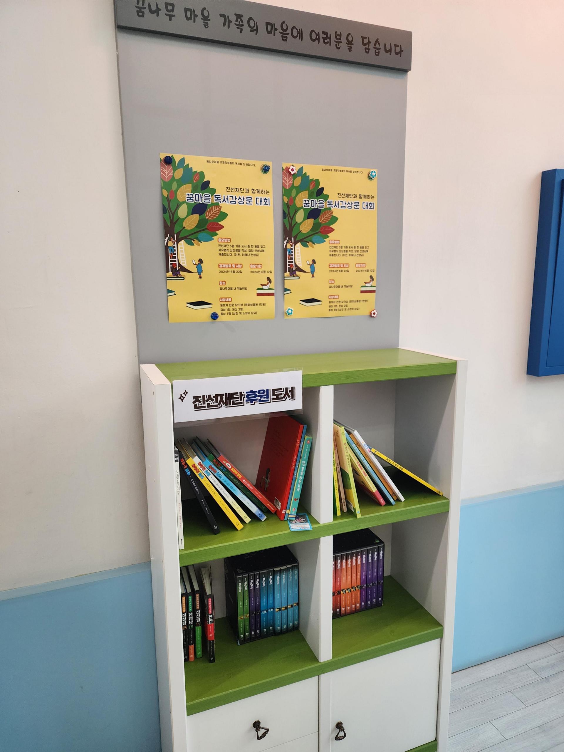 꿈나무마을 책놀이방에 비치되어 있는 진선재단 후원 도서 책장입니다.