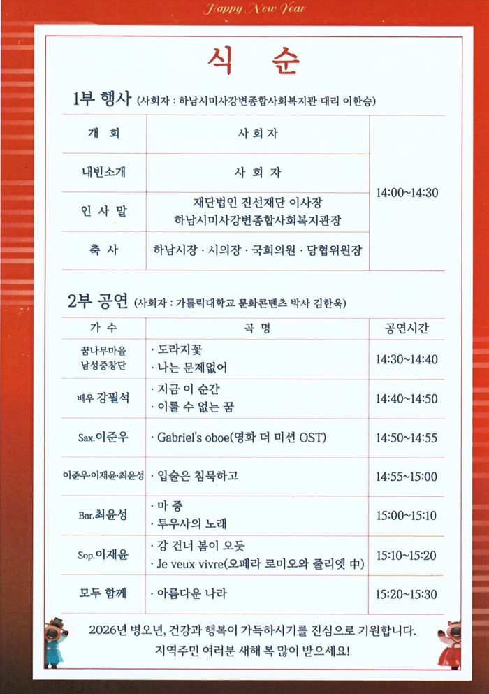 지난 2월 6일 하남시미사강변종합사회복지관과 함께 신년음악회를 개최했습니다.